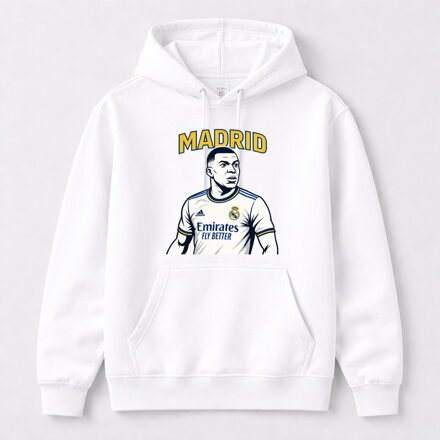 Mikina s kapucňou a potlačou MADRID - Kylian Mbappé, biela